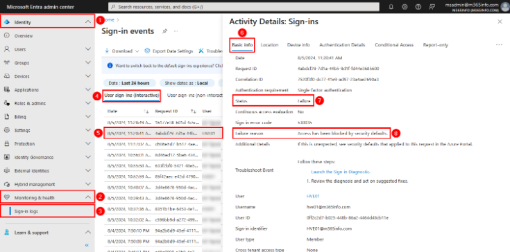 Neden hata aldığınızı veya mesajın gönderilmemesinin nedenini kontrol etmek için Microsoft Entra ID kullanmak en iyisidir.